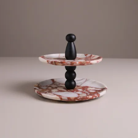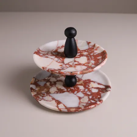 雙序-天然大理石雙層萬用盤(寶格麗紅)